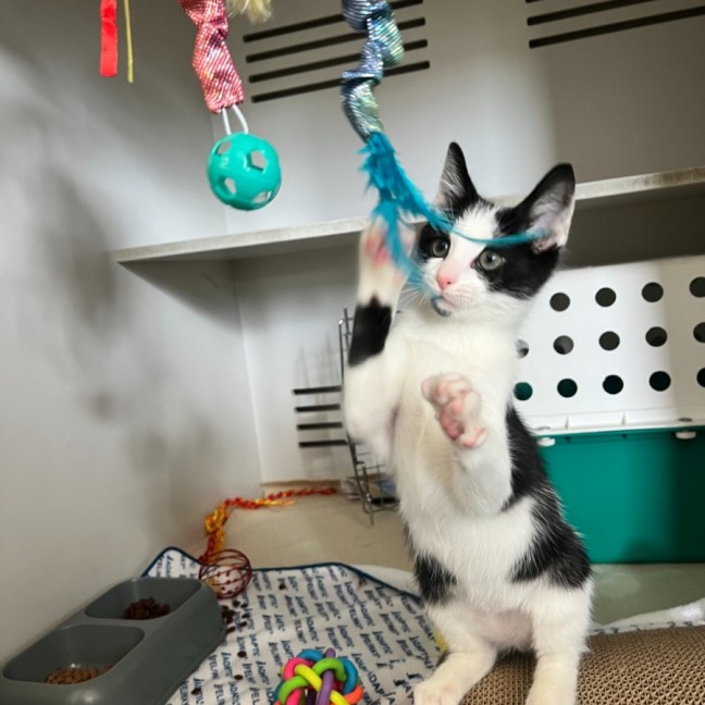 Meet Lucas, a 3-month-old adventurer who seems like he’s stepped straight out of the Upside Down—in the best possible way. This energetic little explorer is always ready for the next quest, whether it’s racing through the house, chasing mysterious moving objects (a.k.a. toys), or investigating every corner like he’s part of his own Hawkins-style adventure. Much like a true member of the party, Lucas would do best going home with another friendly cat who can show him the ropes and help guide him through the strange new world of his forever home. One thing is certain: his love of food is as strong as Eleven’s love of Eggos, and he’ll always be first to arrive when the dinner bell rings. If you’re looking for a brave, curious sidekick to join your party, Lucas is ready to roll for initiative and start his next adventure with you. 🐾🎲