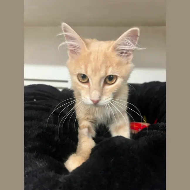 Pipsqueak may be small in size, but he’s a huge bundle of love! This sweet young kitten adores being close to his people and will happily climb onto your chest for cuddles whenever he gets the chance. One of his favorite things to do is make lots of adorable biscuits while he settles in for a snuggle, purring away like a tiny motor. Pipsqueak is the perfect mix of affectionate and playful, and he’s sure to melt hearts with his gentle, loving nature. If you’re looking for a cuddly little companion who will shower you with affection, Pipsqueak is ready to fill your home with warmth and love. 🐾