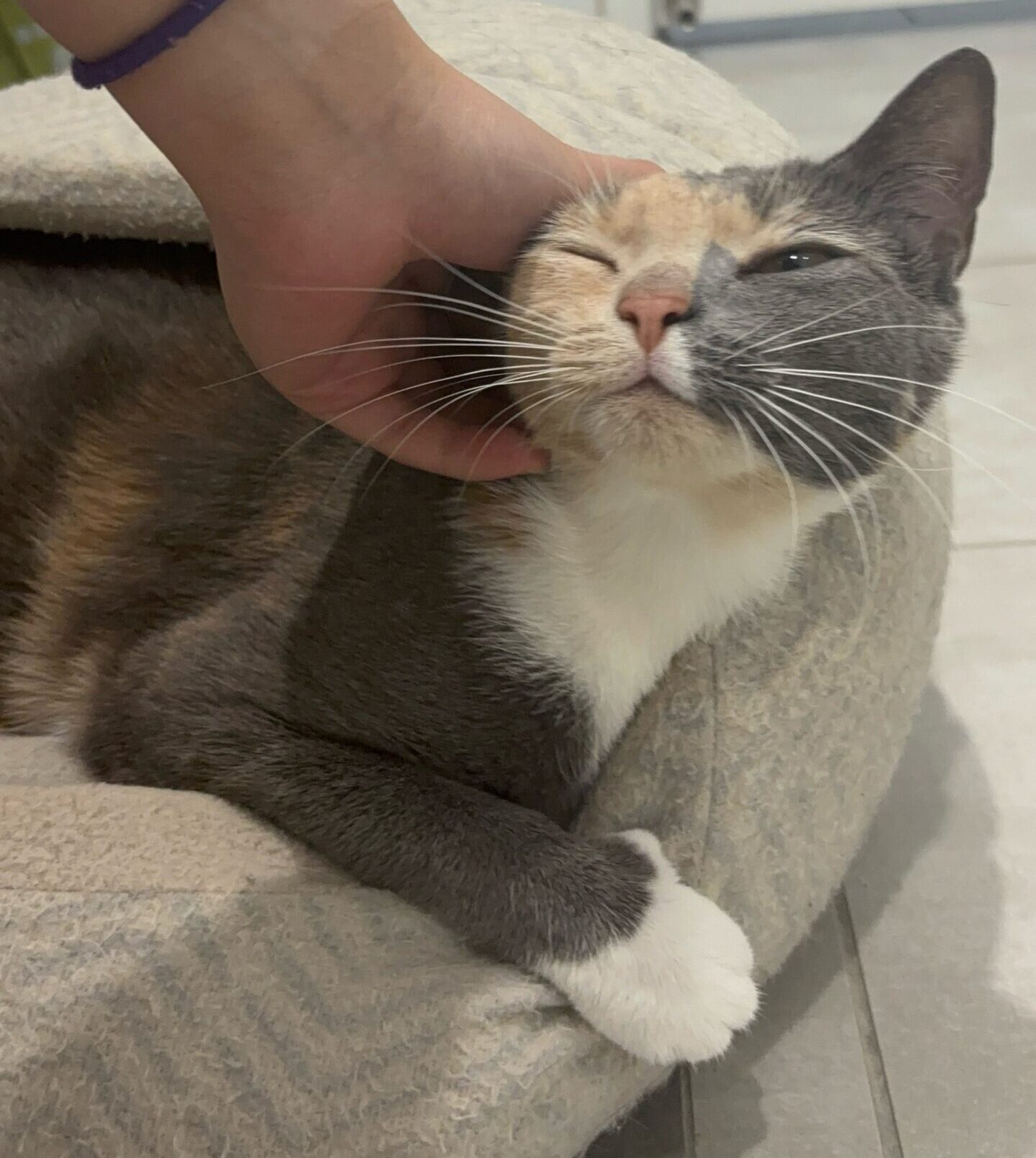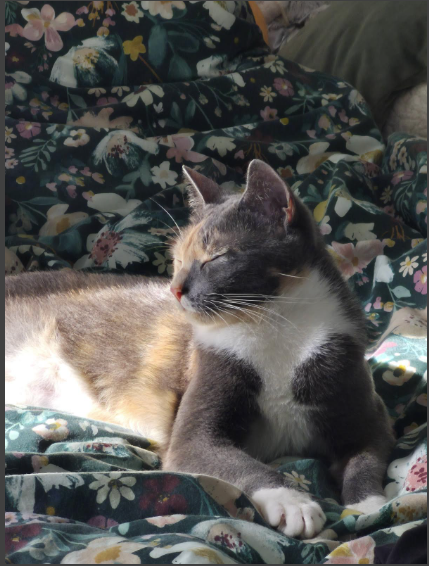 This gorgeous girl lives for her sunspots – you’ll often find her stretched out in a warm patch of light, blissfully napping like it’s her full-time job. But don’t be fooled… when she’s awake, Ruby is all about fun, connection, and snacks (especially snacks).