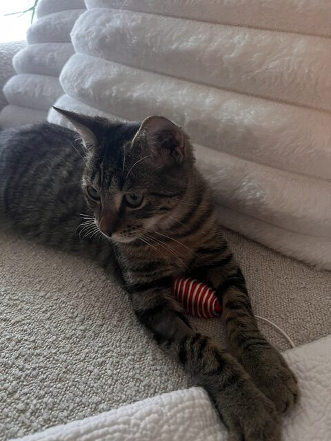 One of Teddy’s favourite pastimes is basking in a warm patch of sunlight, drifting off into peaceful naps and recharging for his next cuddle session. His calm and loving nature makes him a wonderful companion for anyone looking for a relaxed and affectionate feline friend.